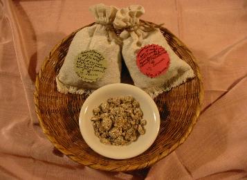 blend of dry rose petals, dry fruit leaves, with essential oils