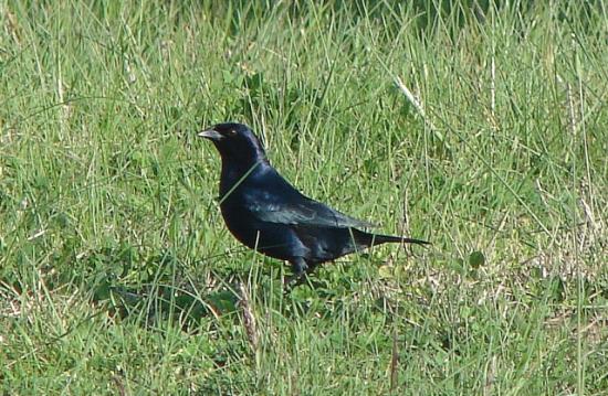The male Shiny Cowbird is 20.3 cm long, weighs 45 g and is all black with an iridescent purple-